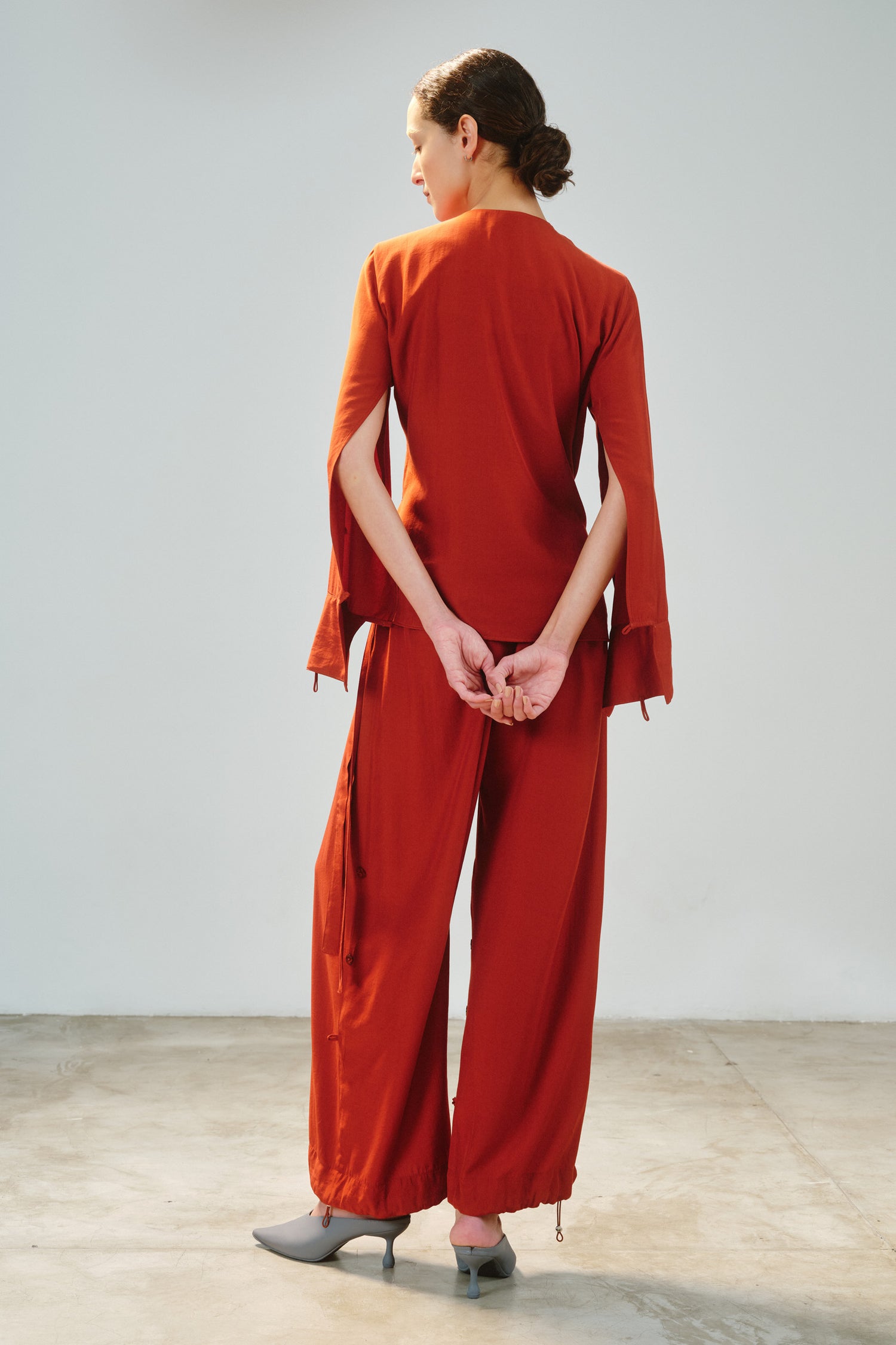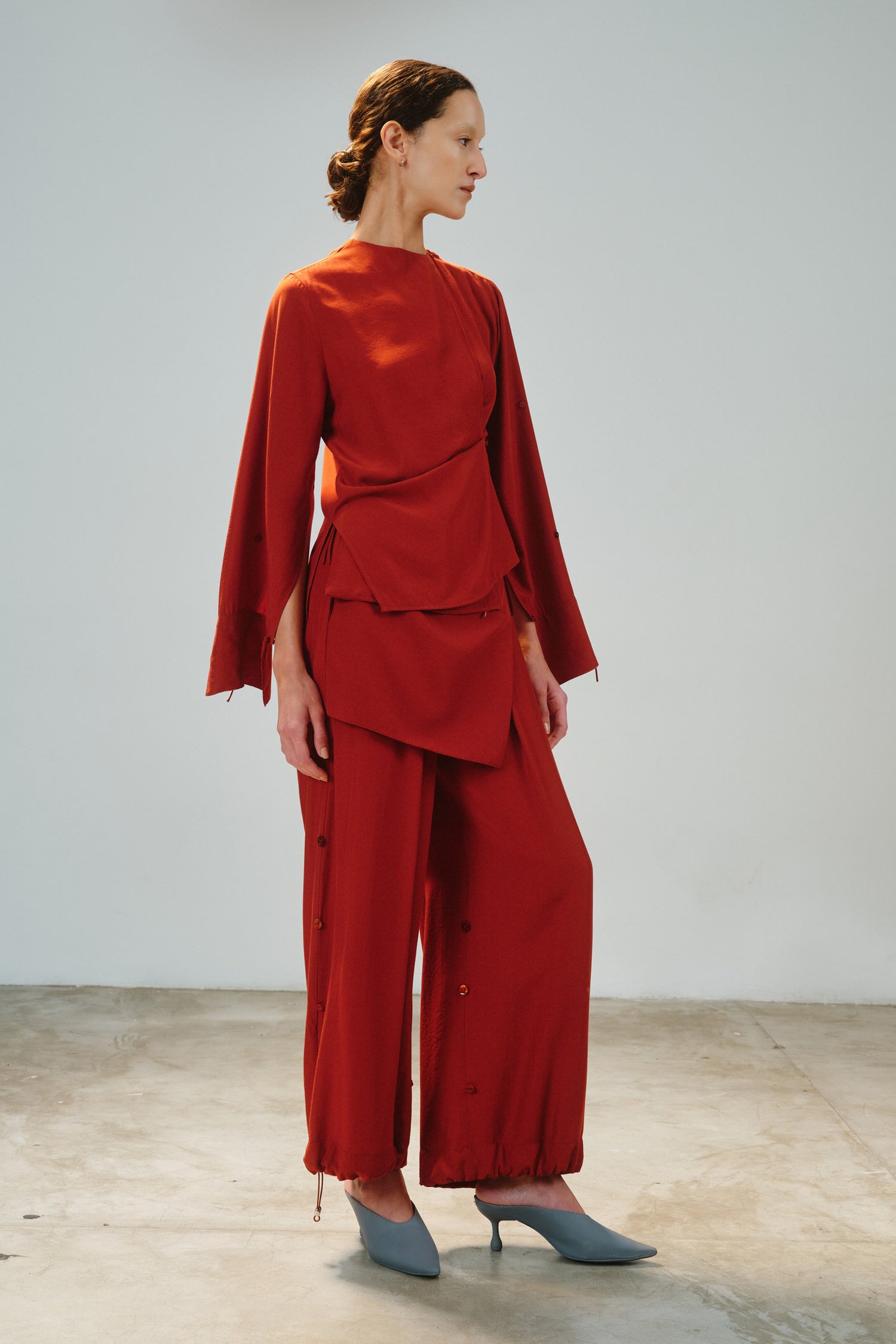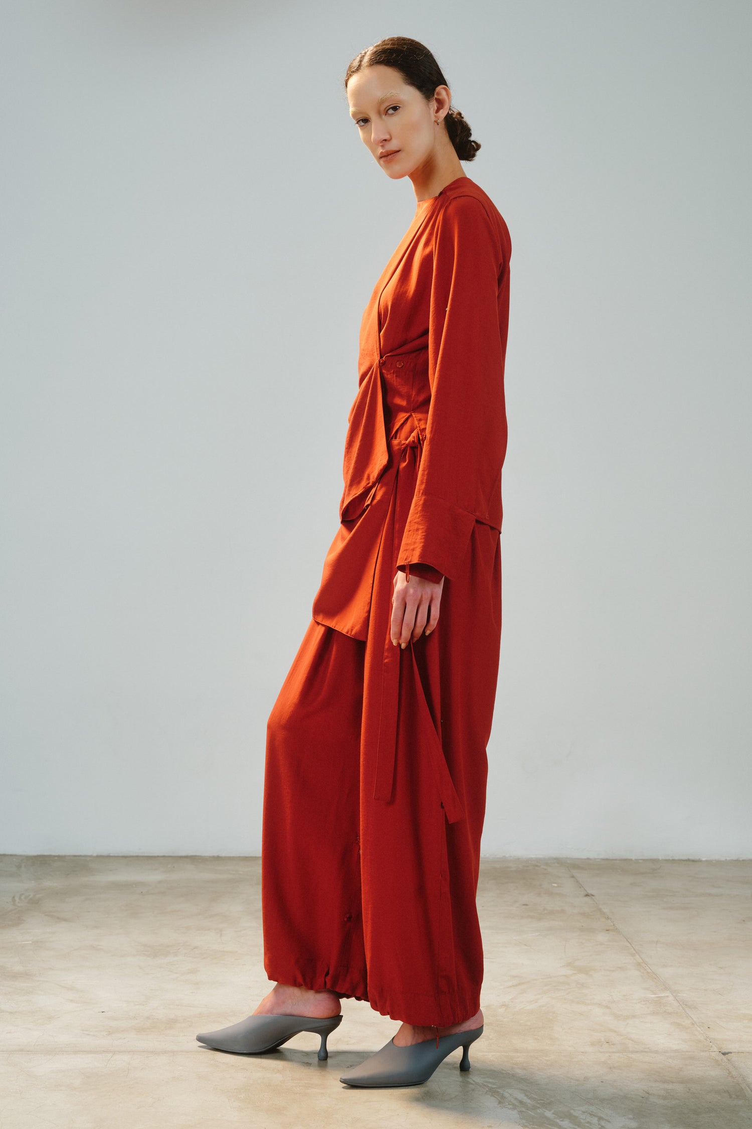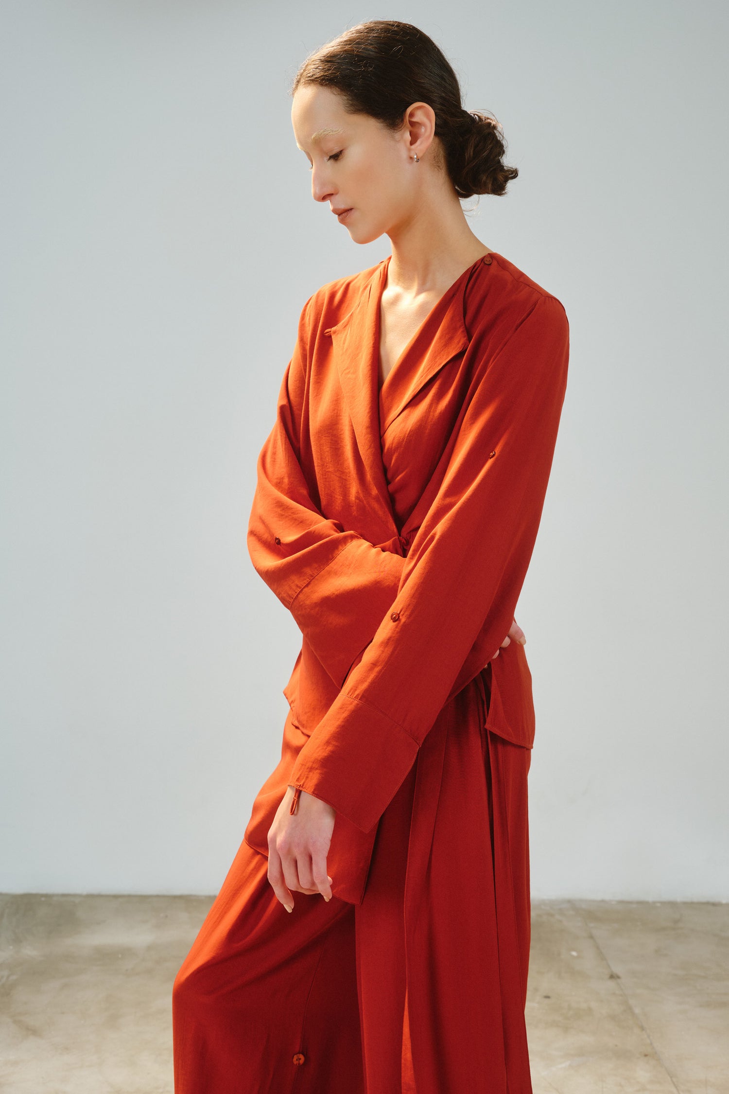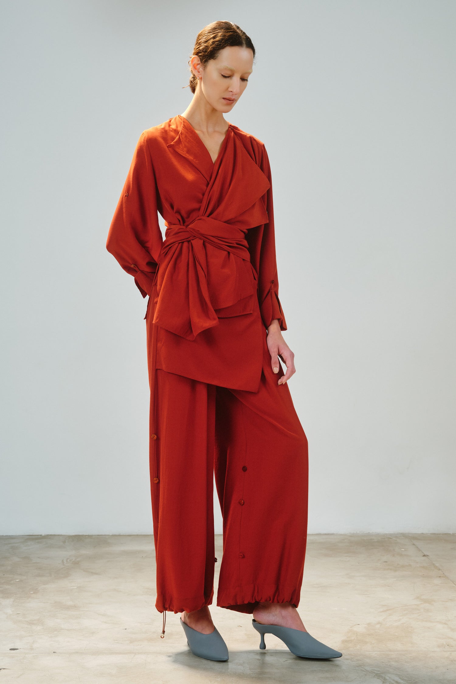 • Camisa modular em tecido de toque acetinado, com proposta versátil e autoral.
