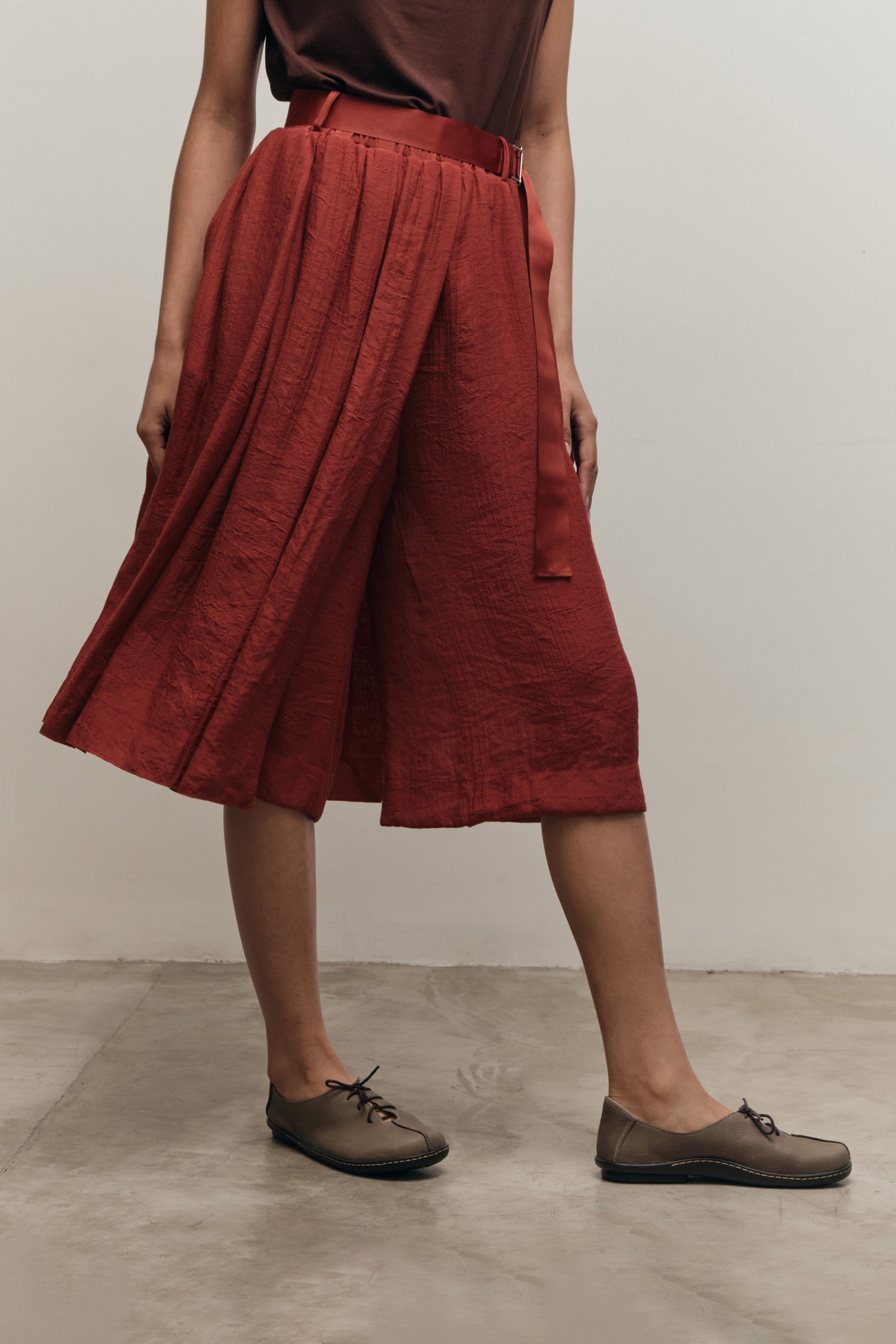 • Bermuda com sobreposição de saia, criando efeito visual sofisticado e moderno
