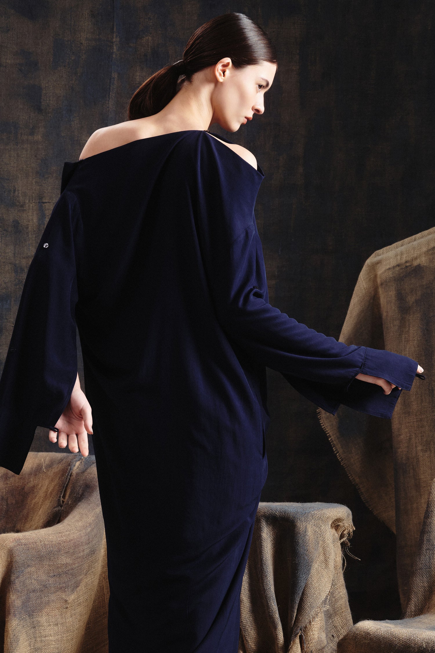 • Pode ser usado totalmente solto, com shape lânguido e elegante, ou ajustado para criar drapeados esculturais.