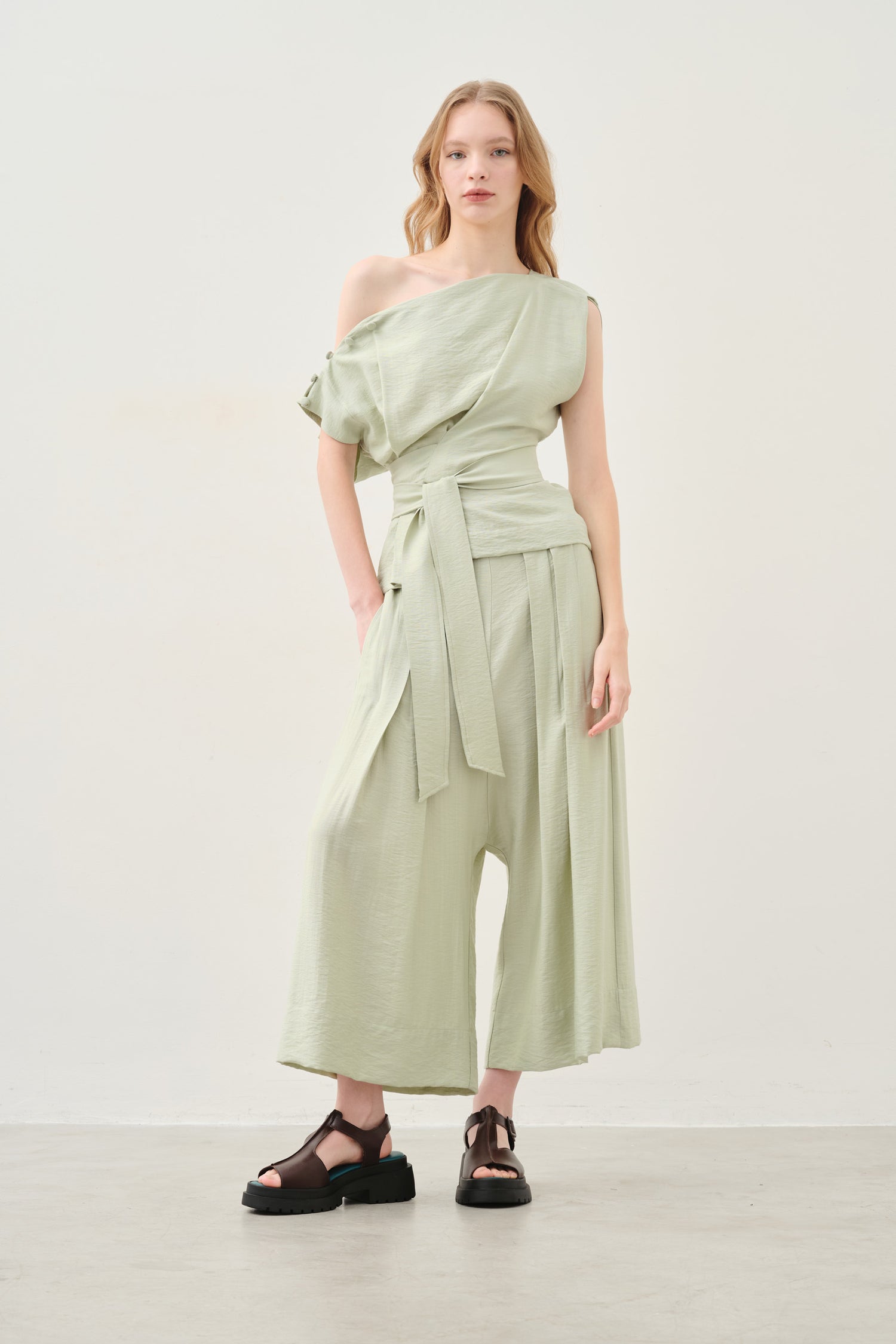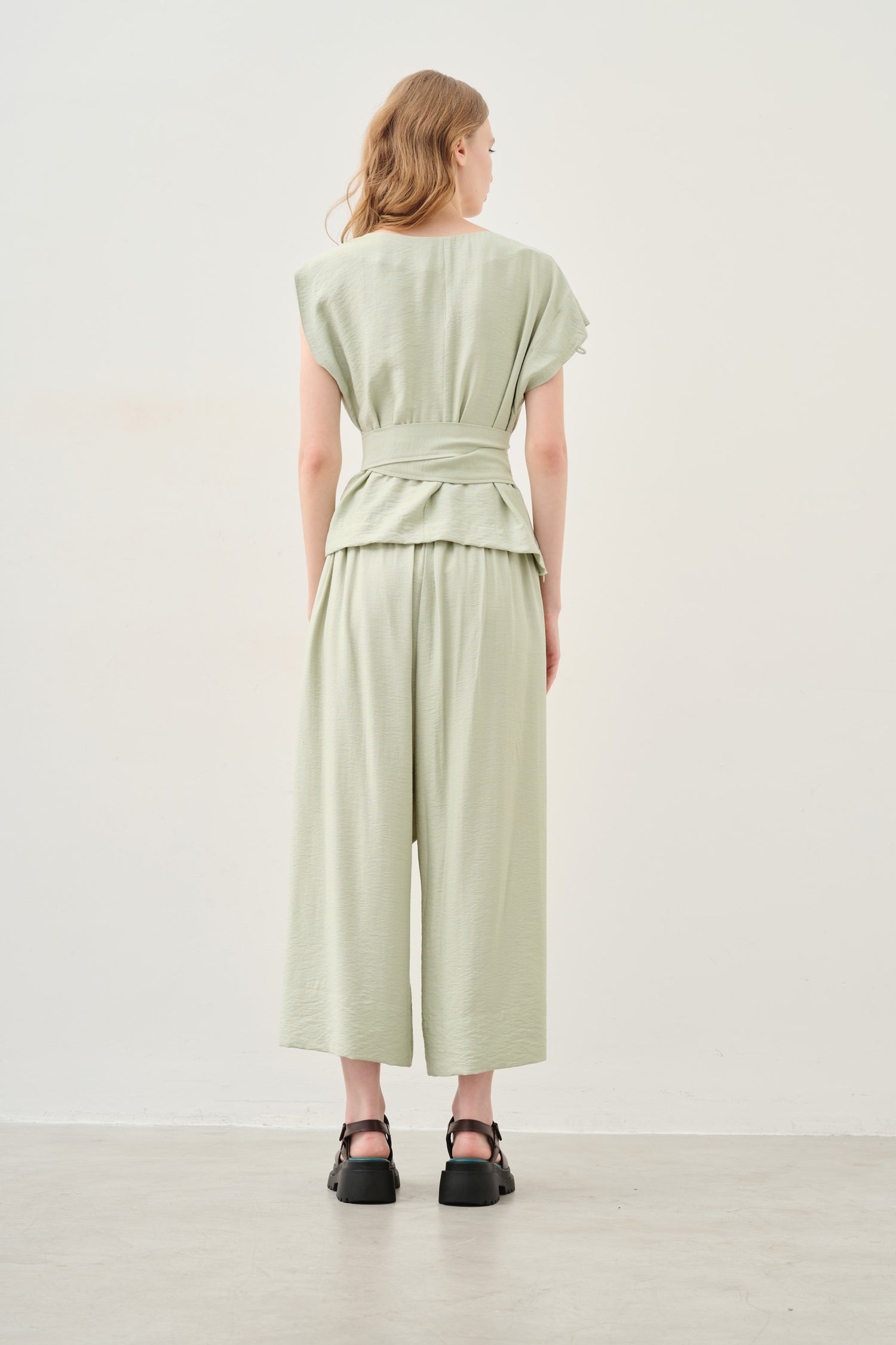 • Blusa de construção arquitetônica com amarração embutida na cintura, permitindo ajustar a silhueta com precisão e elegância