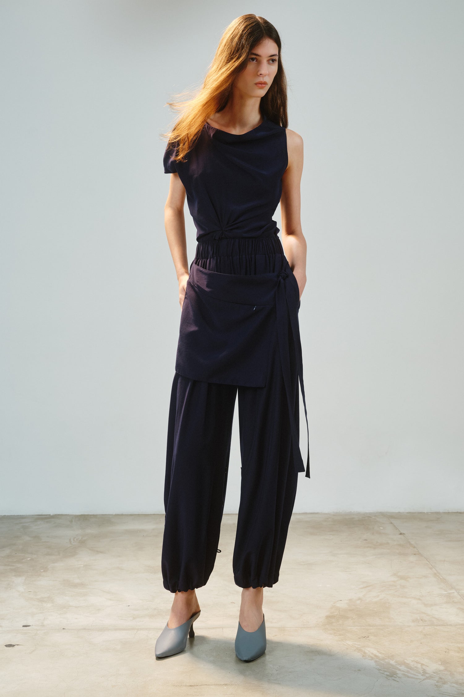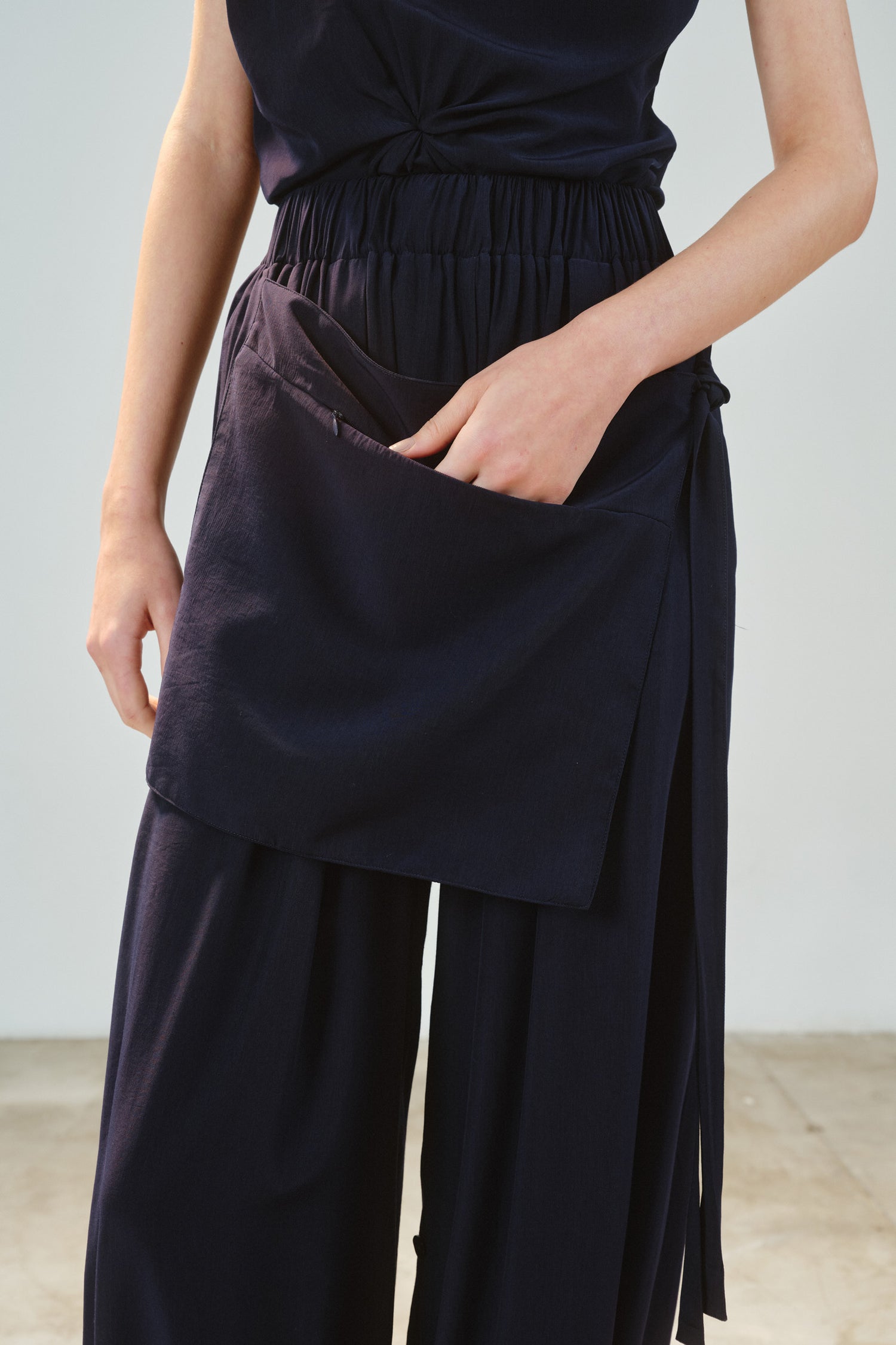 • Cinto-pala com bolso e fecho de zíper invisível, que pode ser usado solto, atado na frente ou nas costas, ampliando as possibilidades de styling.