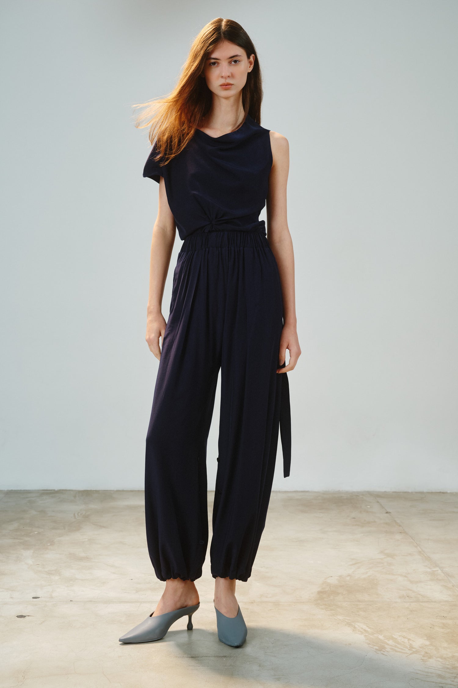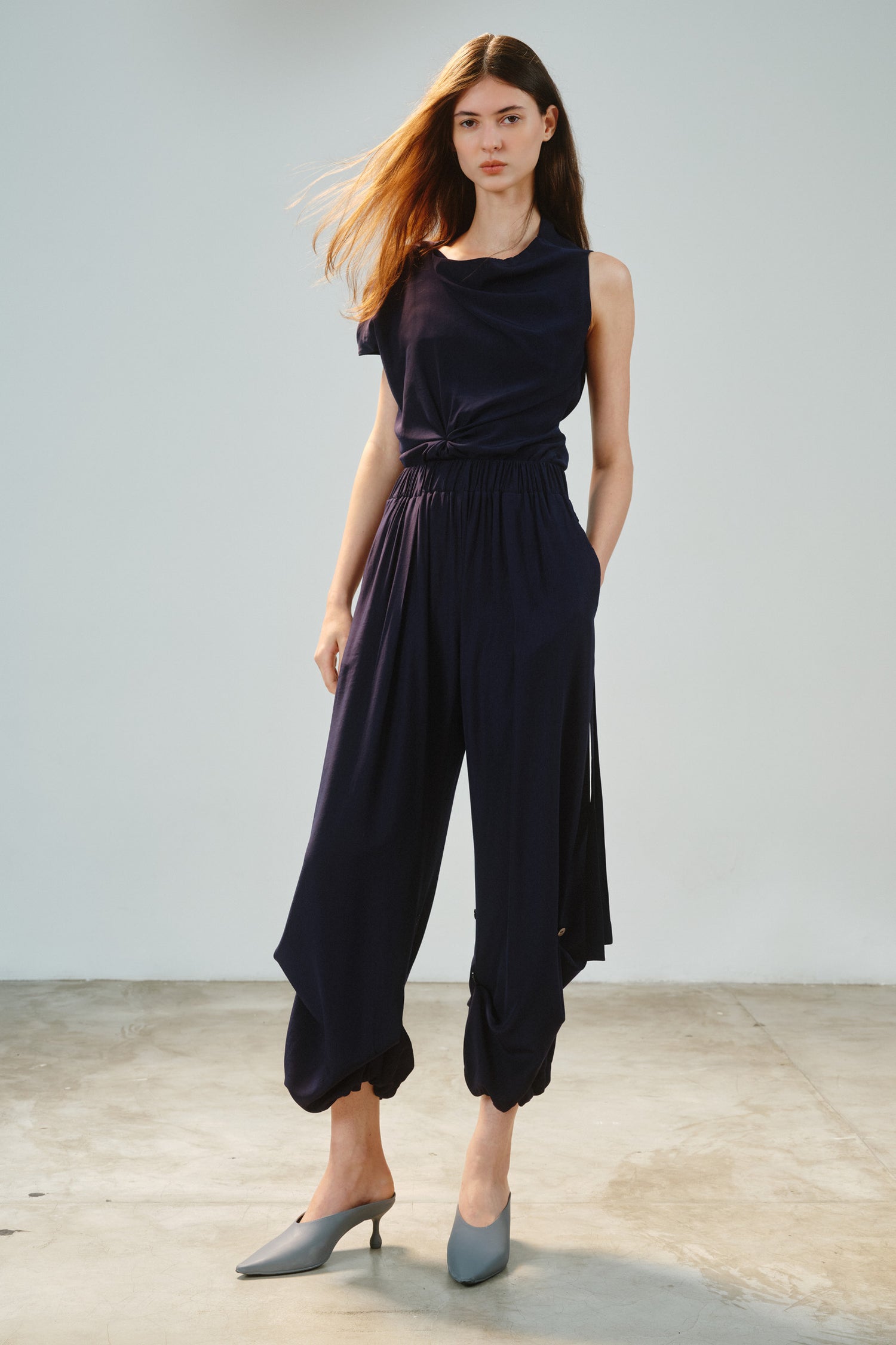 • Calça em tecido com toque de cupro, de visual fluido e sofisticado.