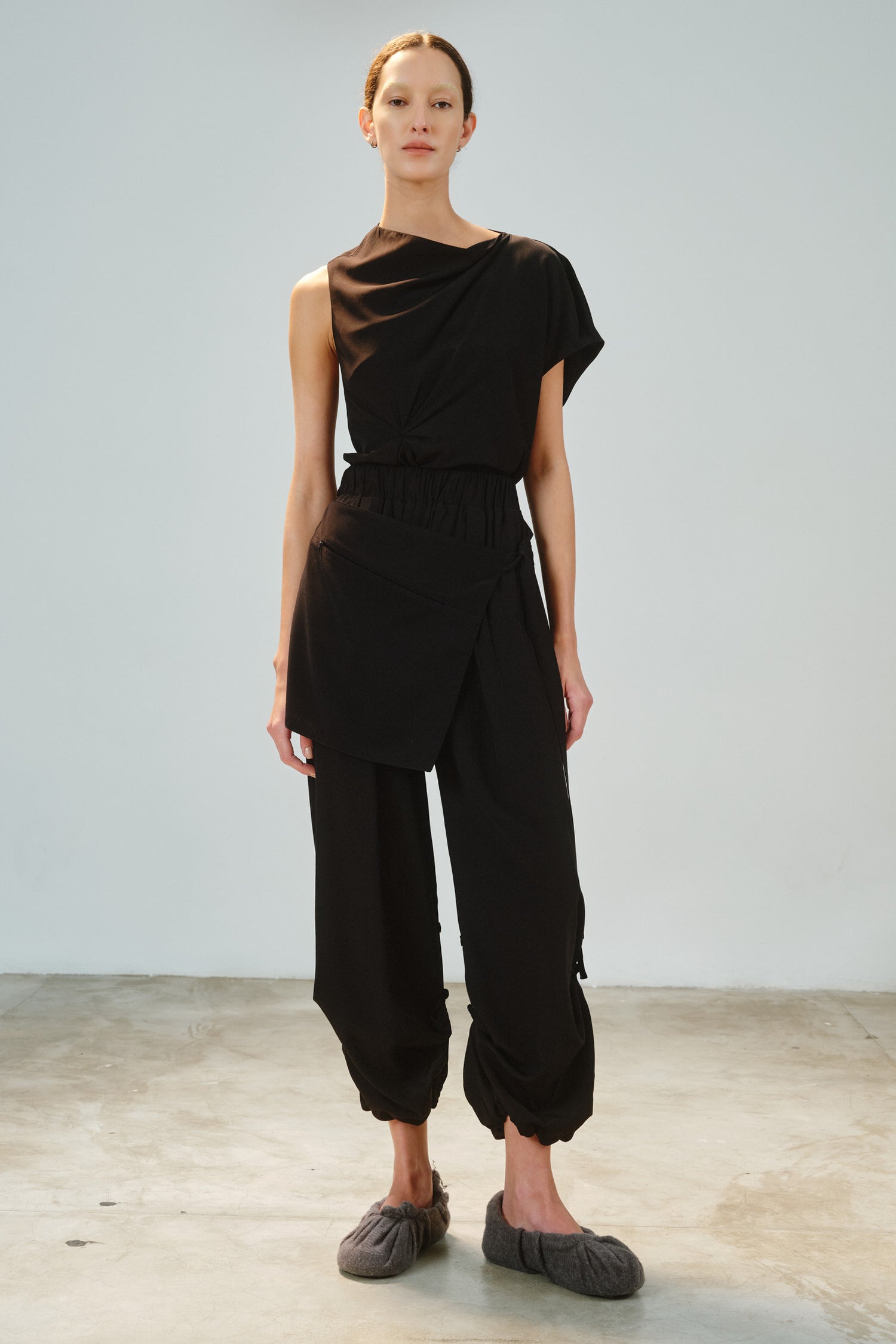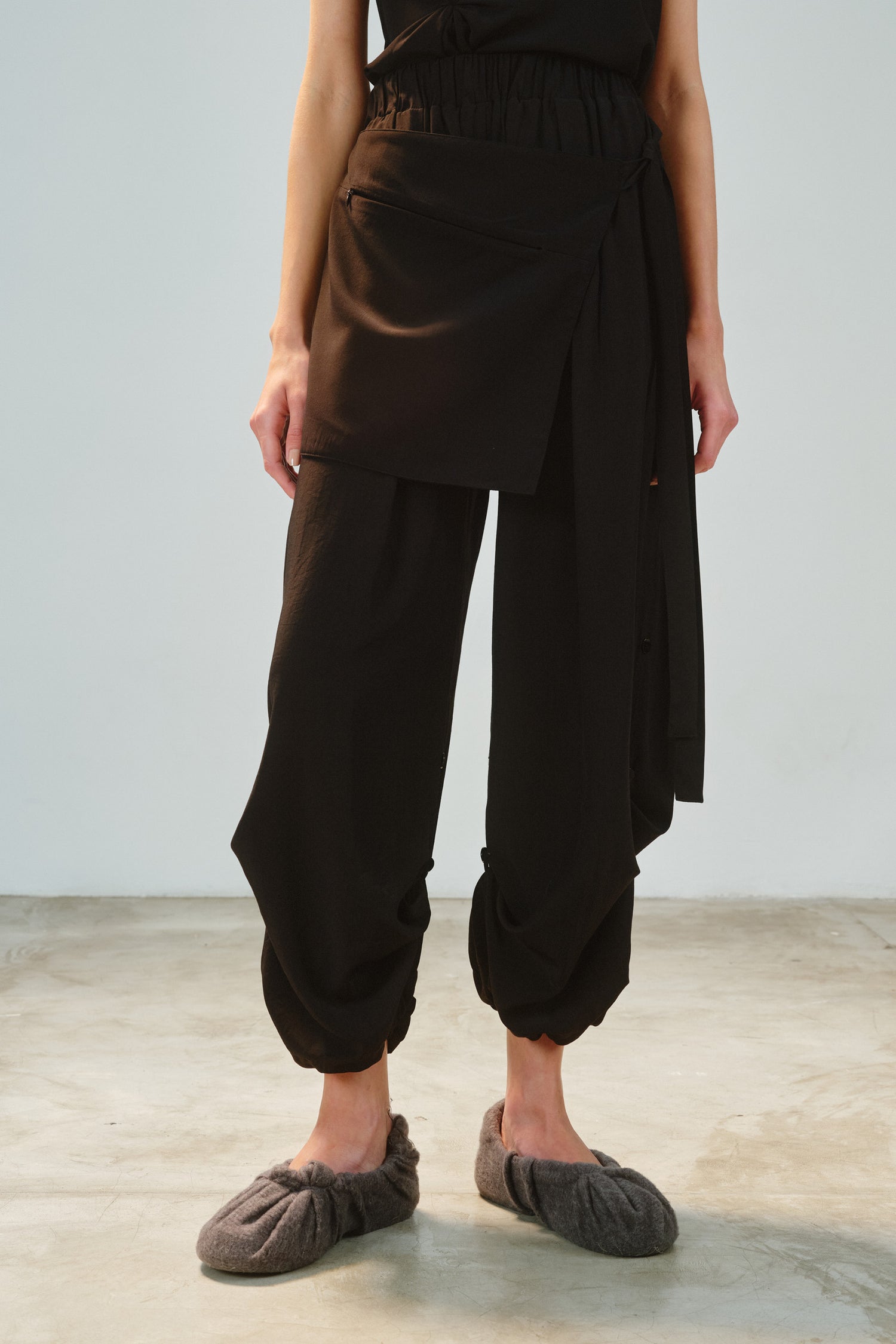 • Cinto-pala com bolso e fecho de zíper invisível, que pode ser usado solto, atado na frente ou nas costas, ampliando as possibilidades de styling.