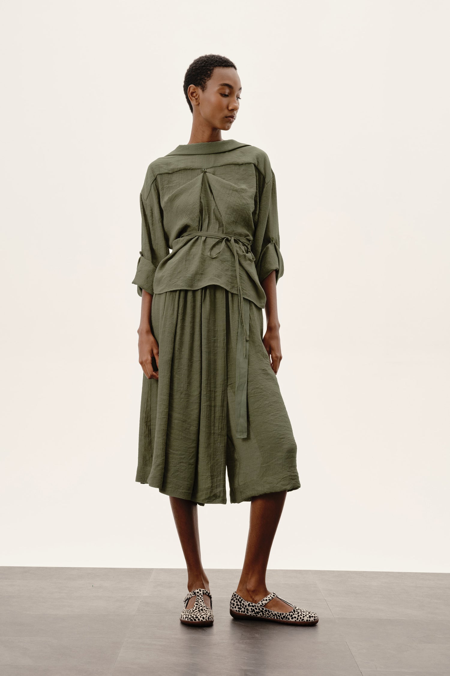 • Estrutura fluida que garante movimento natural e caimento elegante
