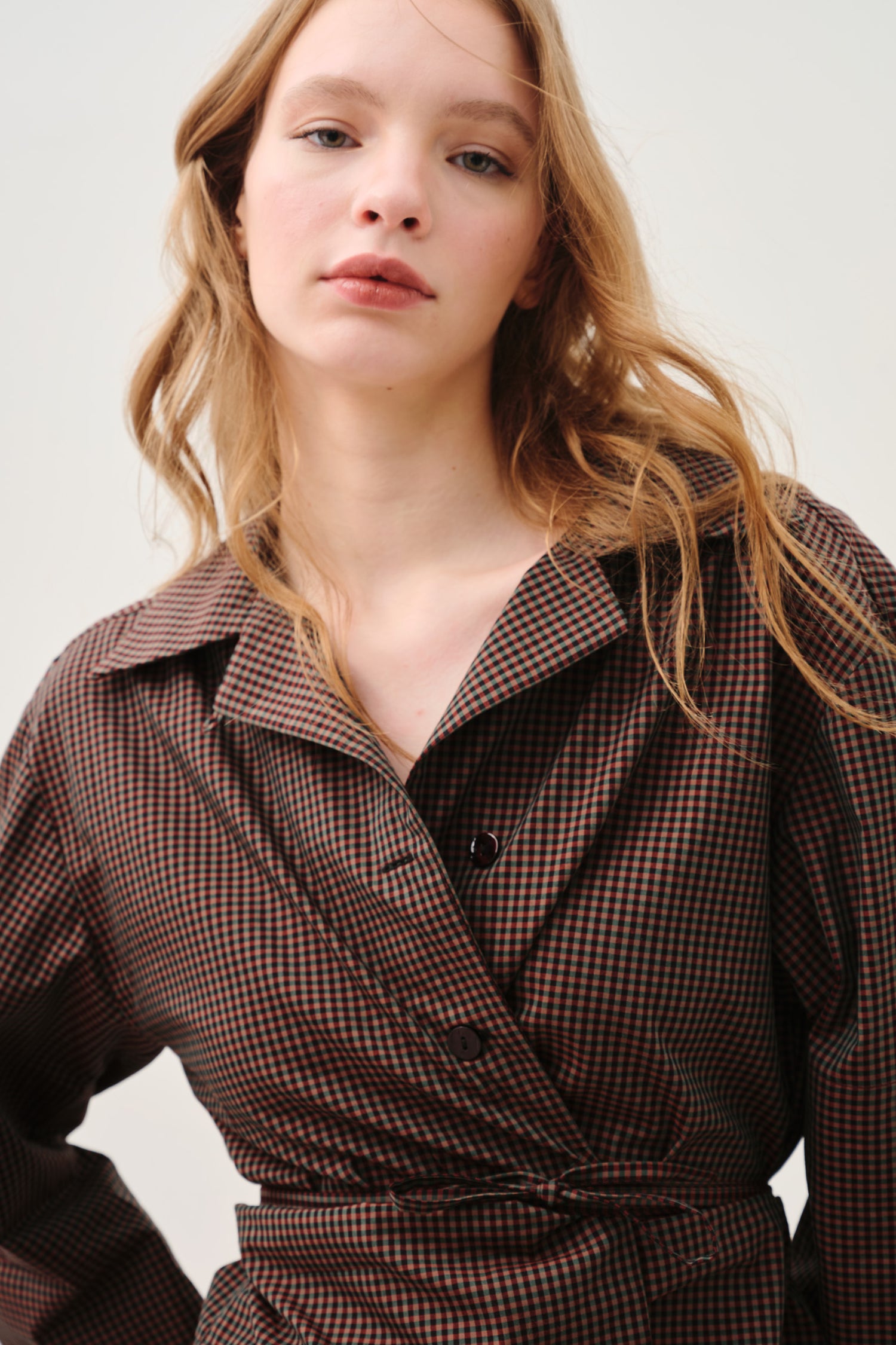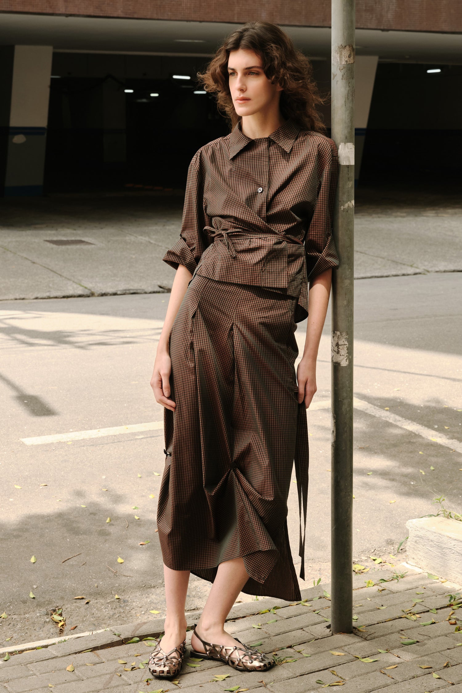 • Tricoline de algodão puro, com padrão vichy clássico reinterpretado de forma atual
