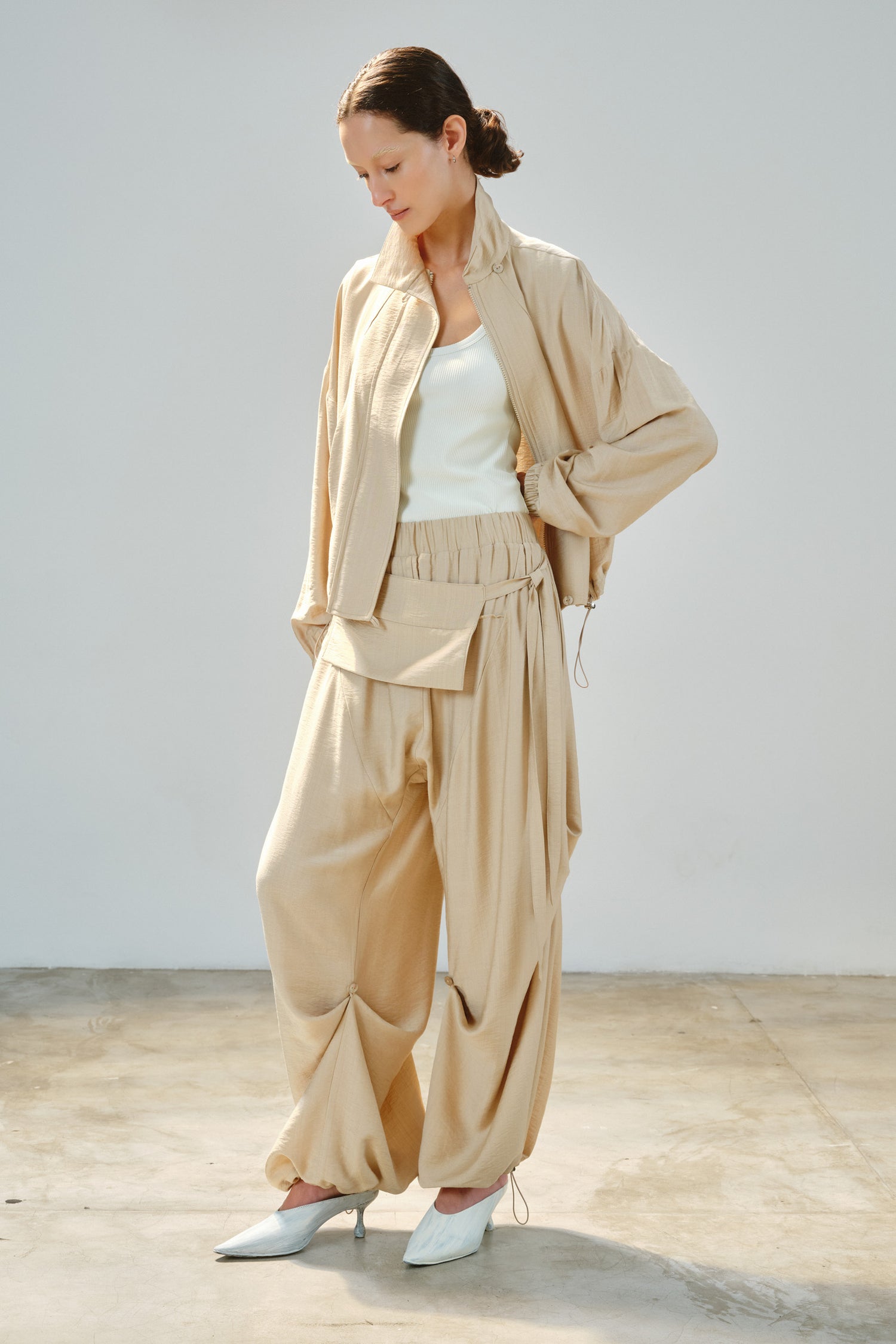• Jaqueta que funde referências de streetwear com alfaiataria.