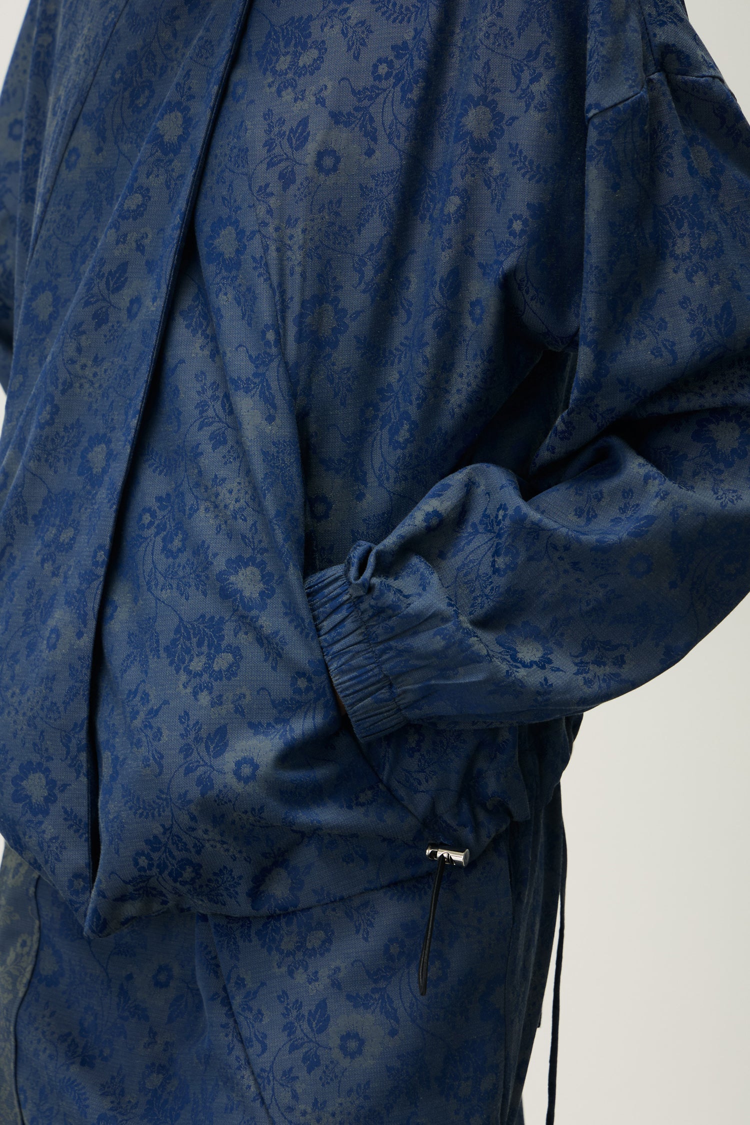Barra com regulador de elástico e enforcador, permitindo ajustar o caimento conforme o styling — solta para um look descontraído ou ajustada para um efeito mais estruturado.