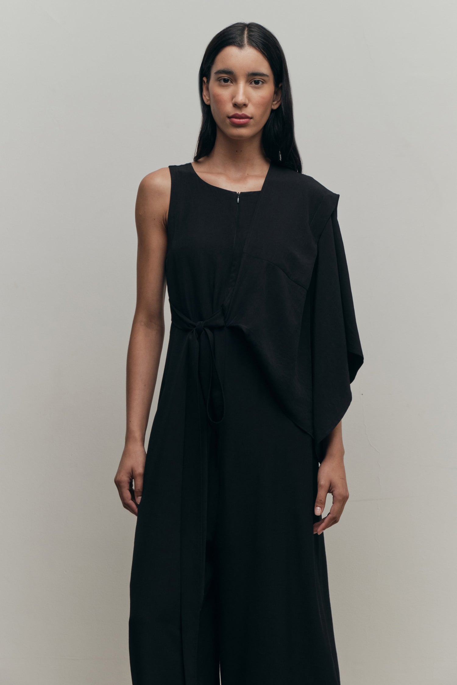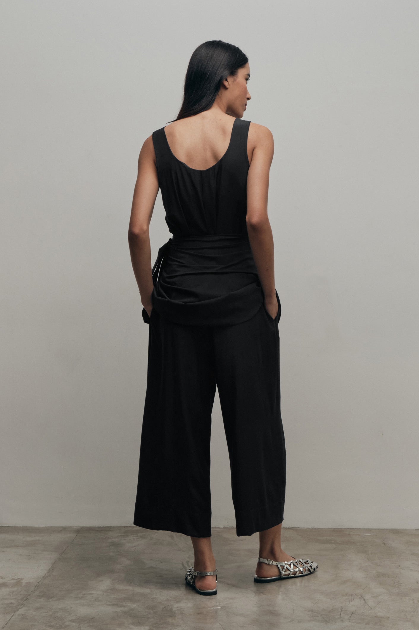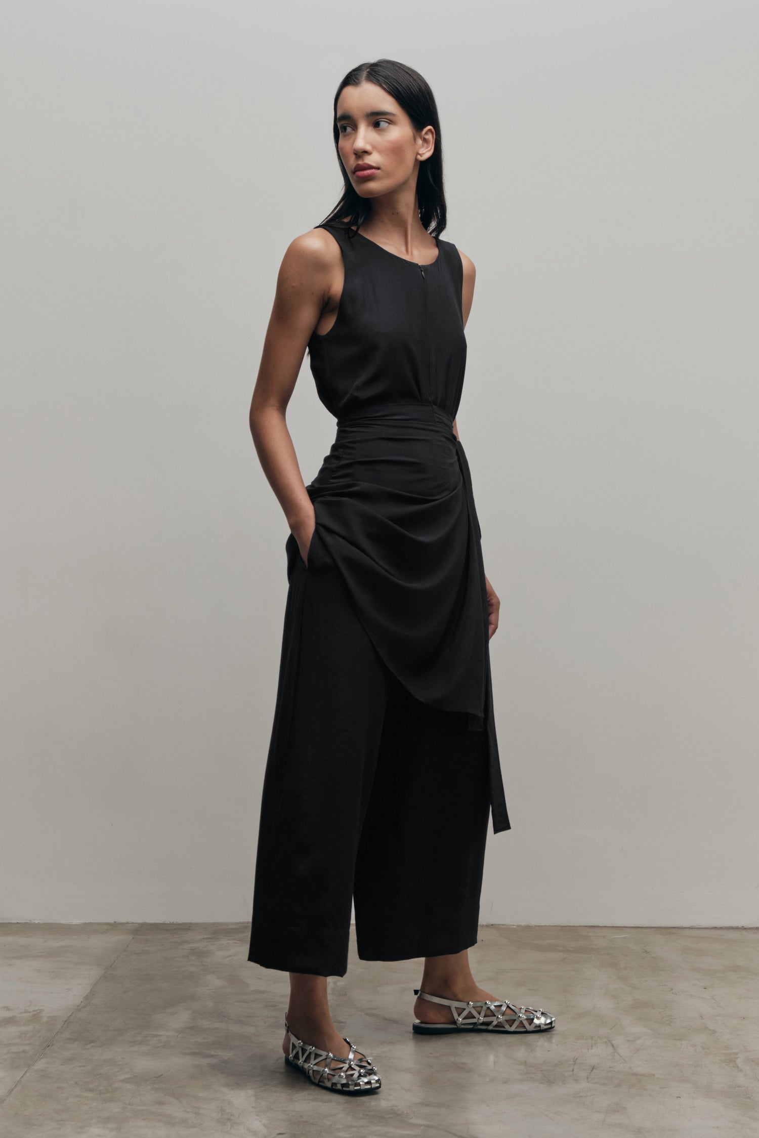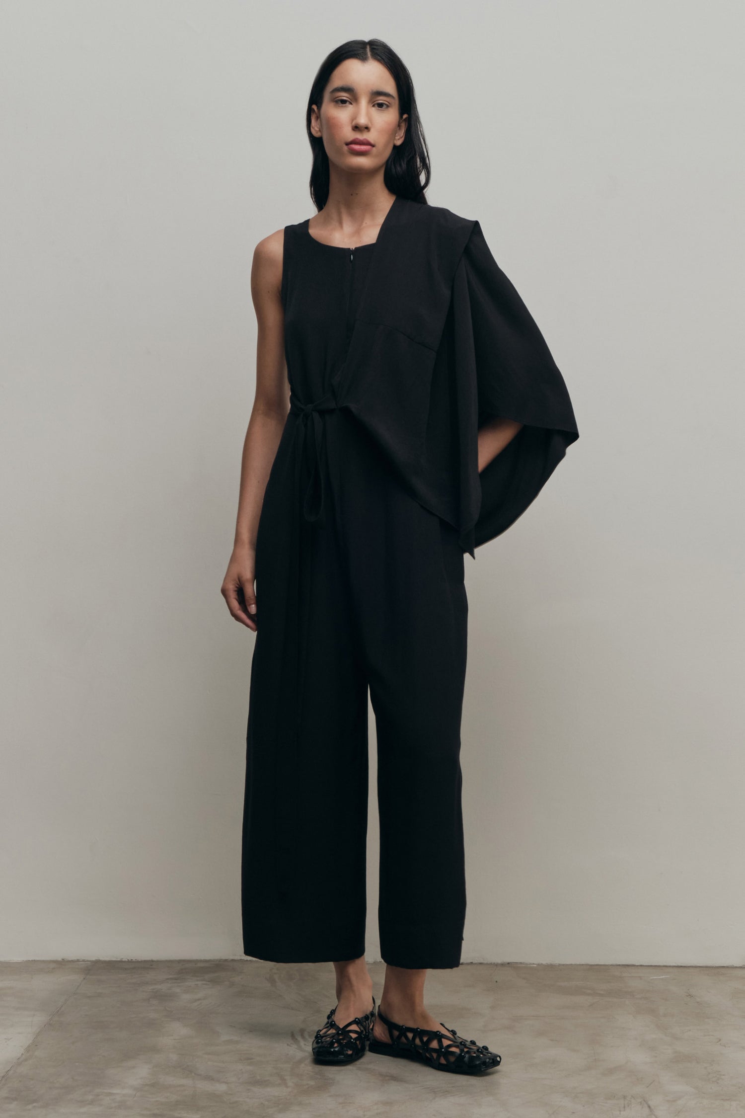 • Macacão sem mangas com construção de alfaiataria em tecido leve e fluido