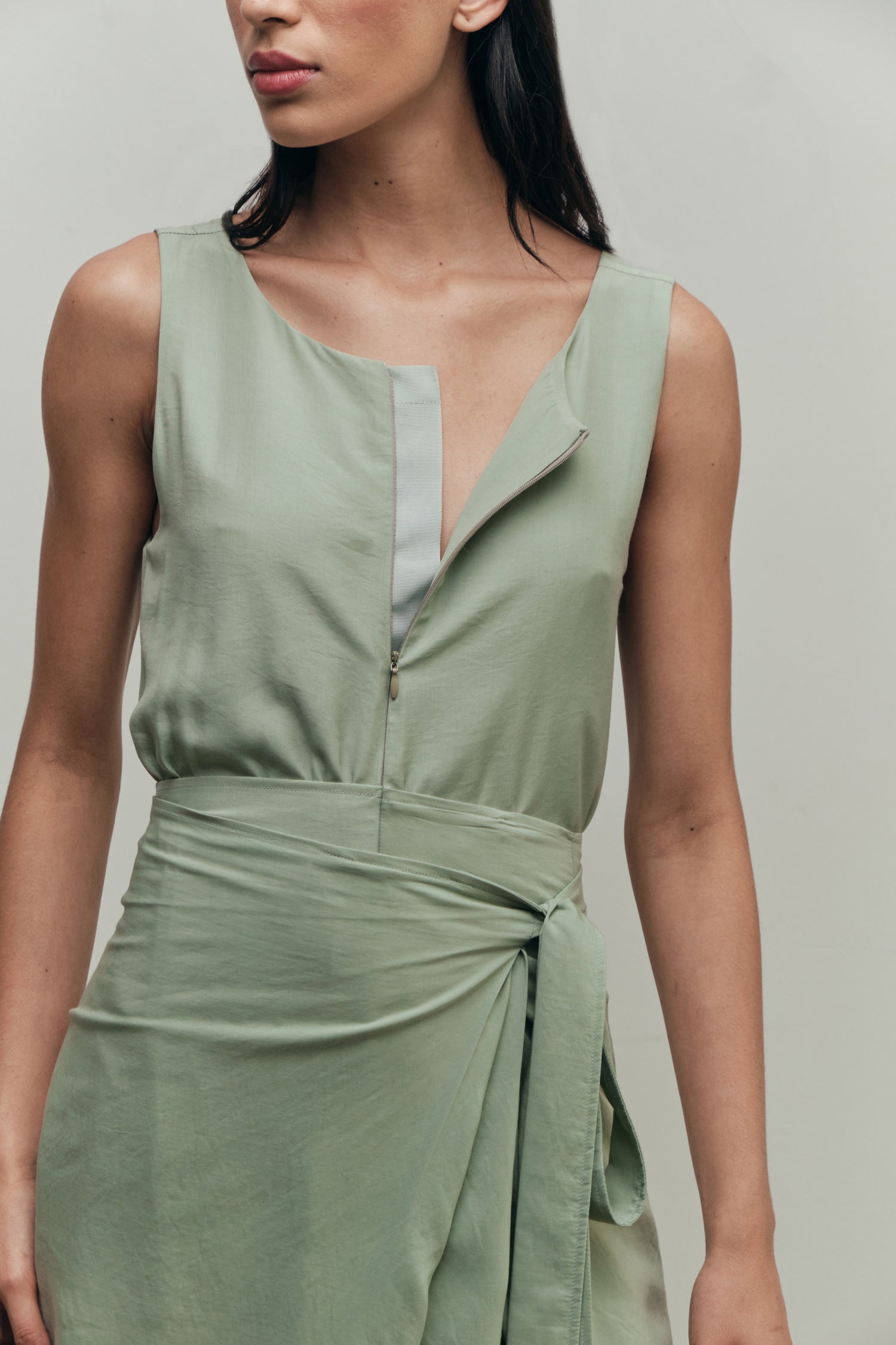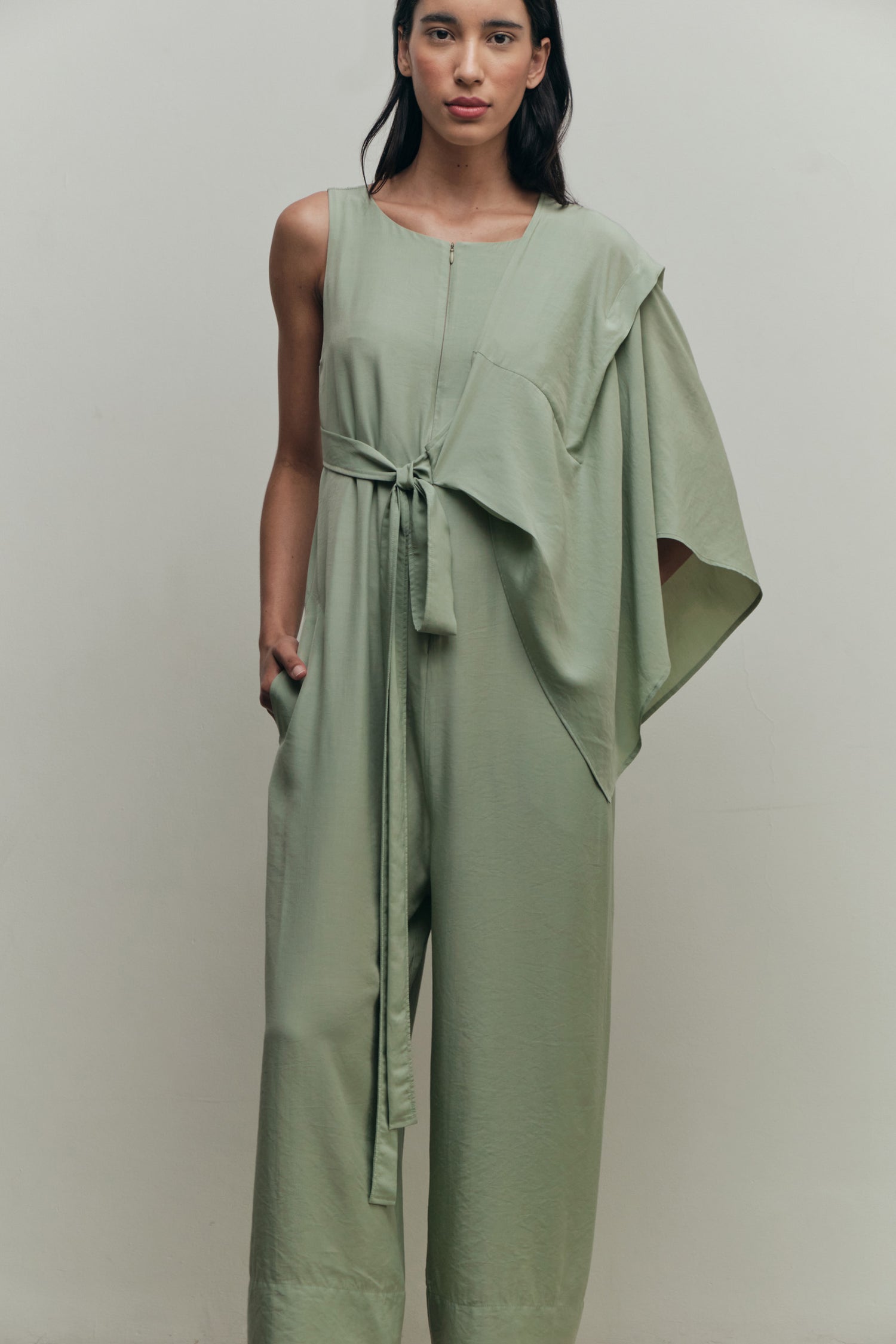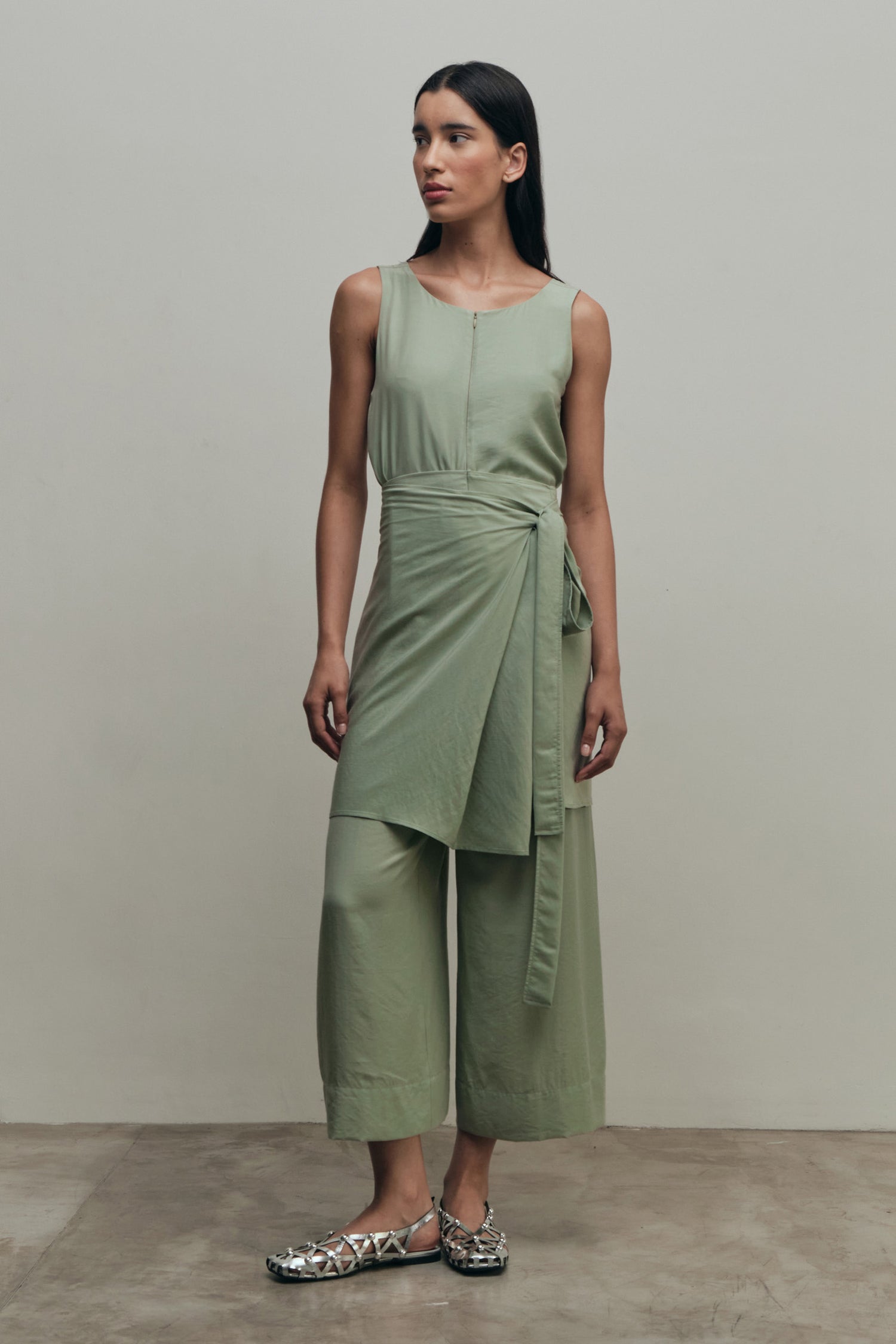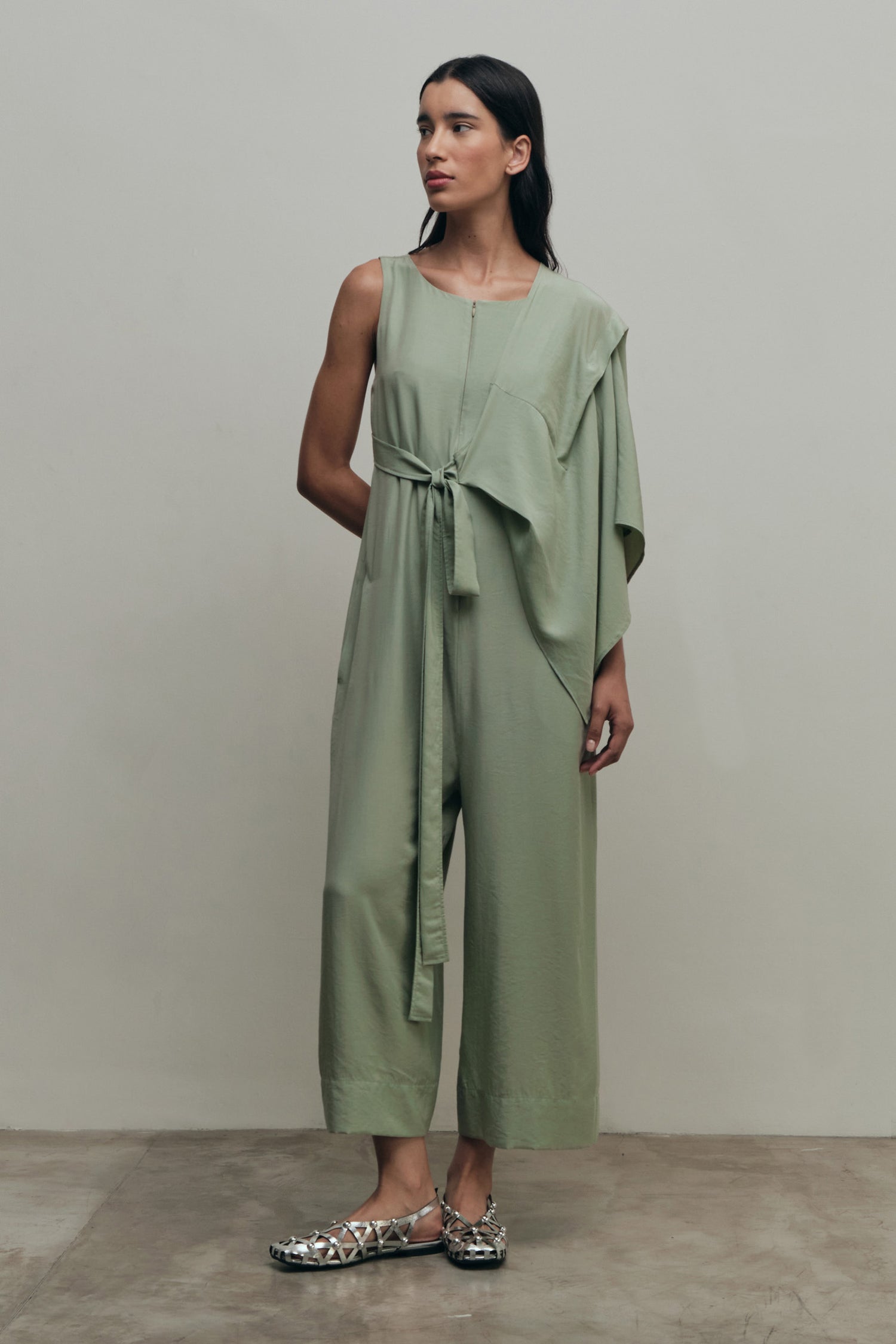 • Macacão sem mangas com construção de alfaiataria em tecido leve e fluido