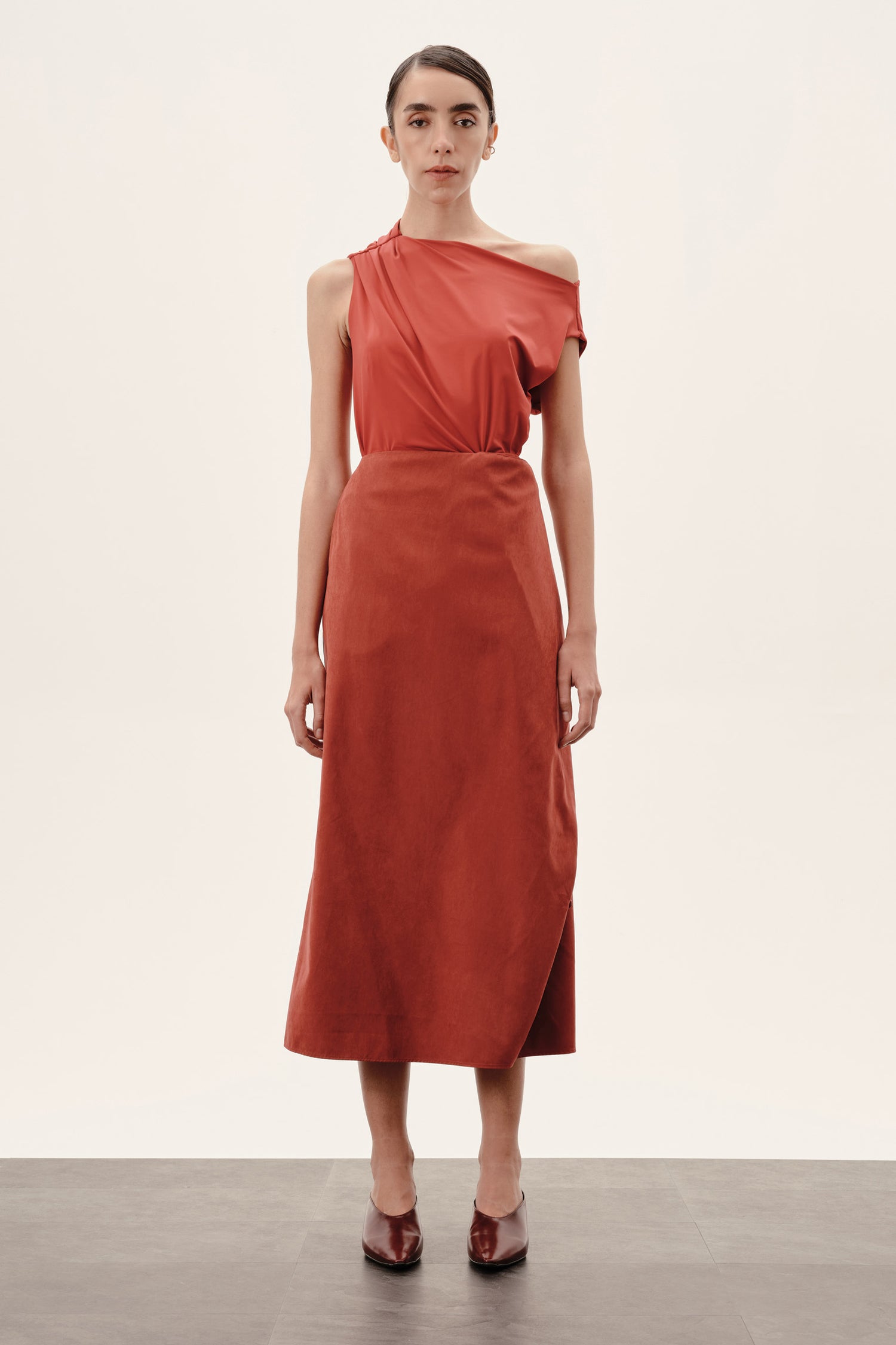 Saia com design arrojado e corte de alfaiataria, que equilibra sofisticação e originalidade.