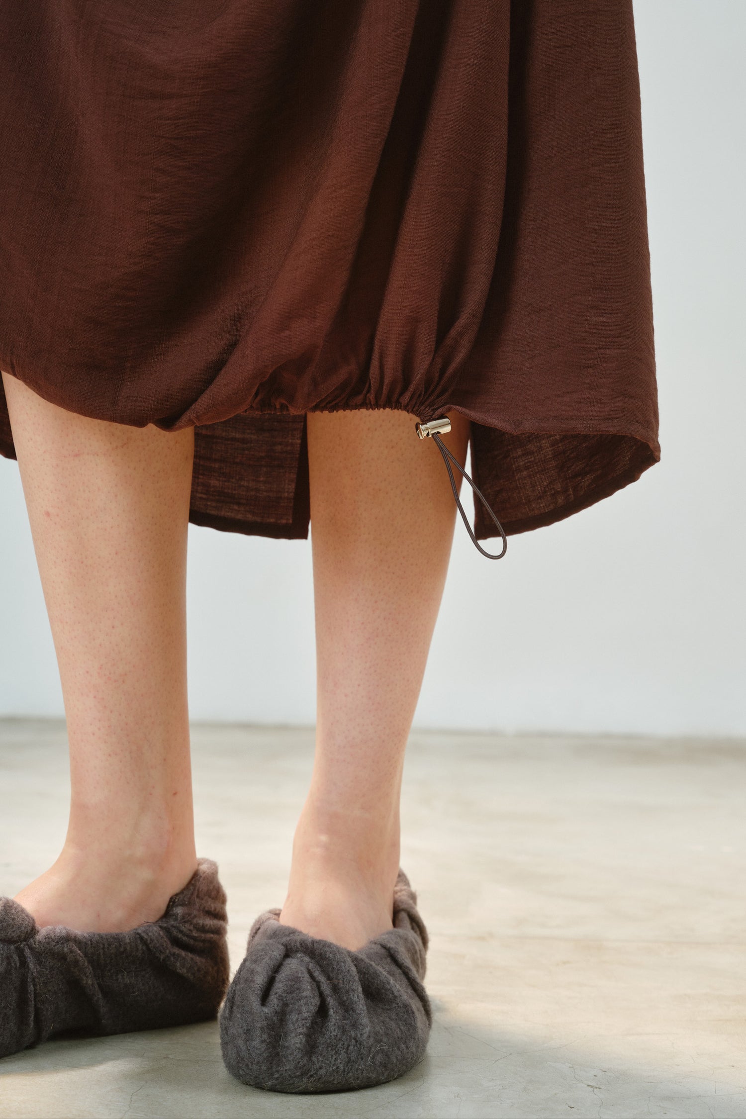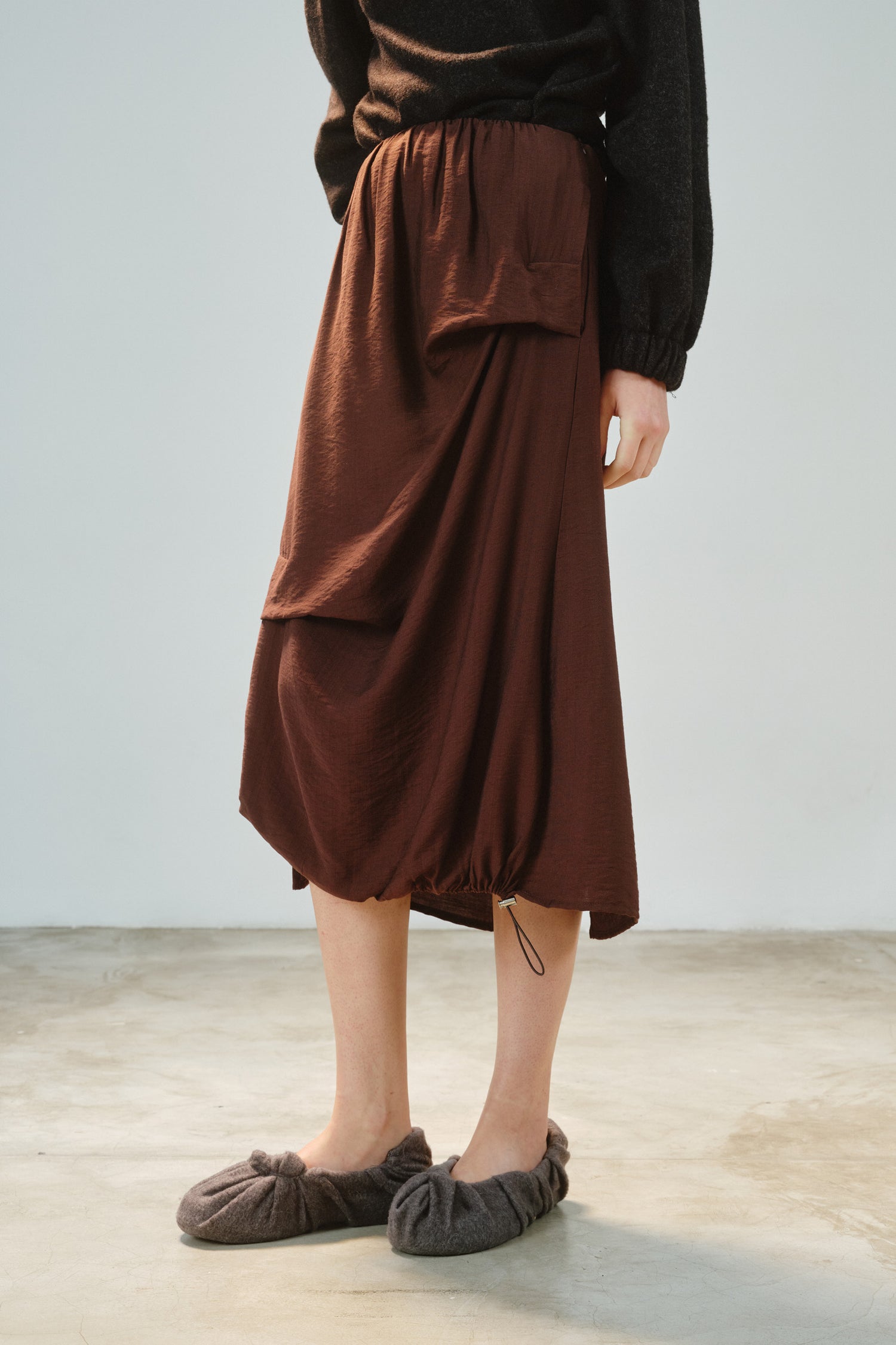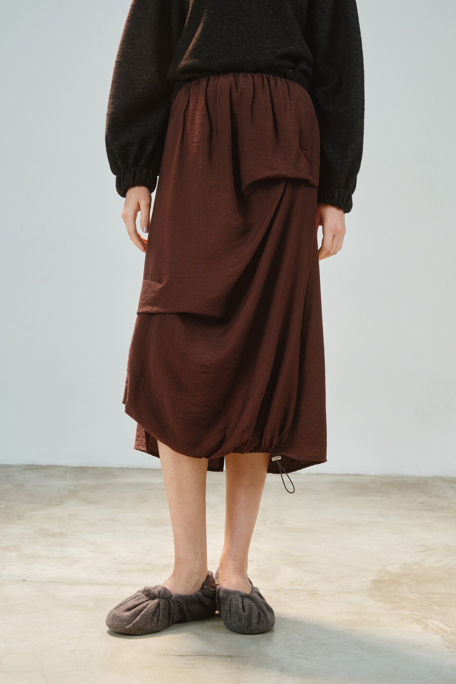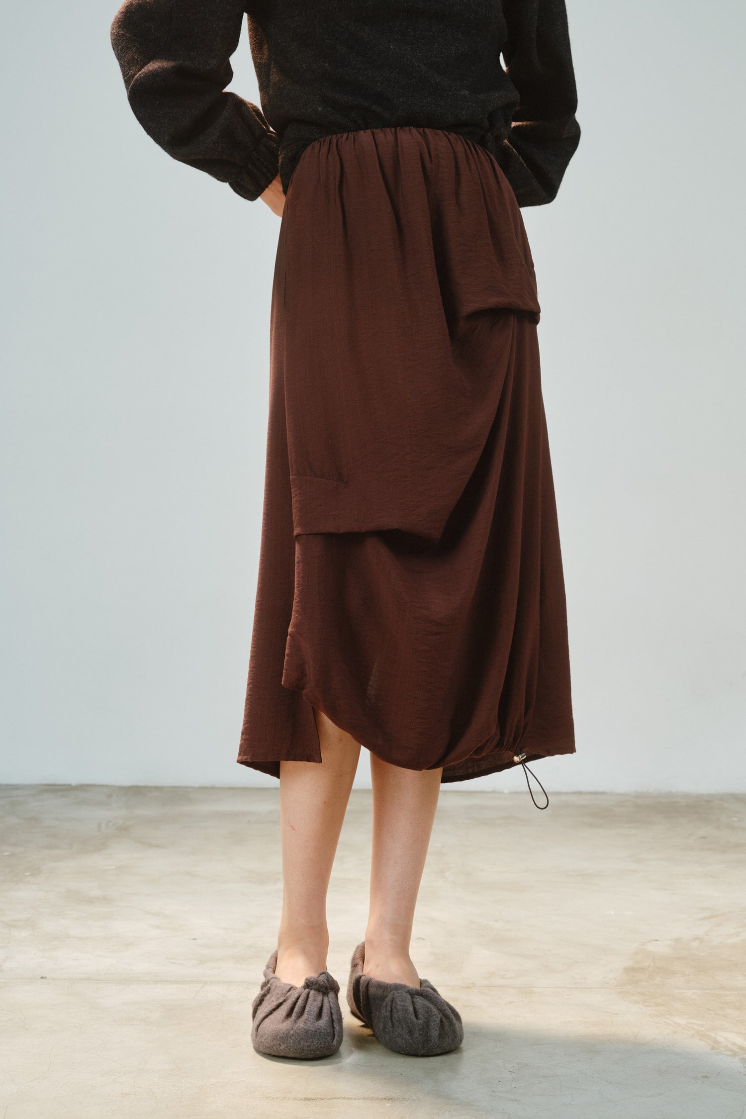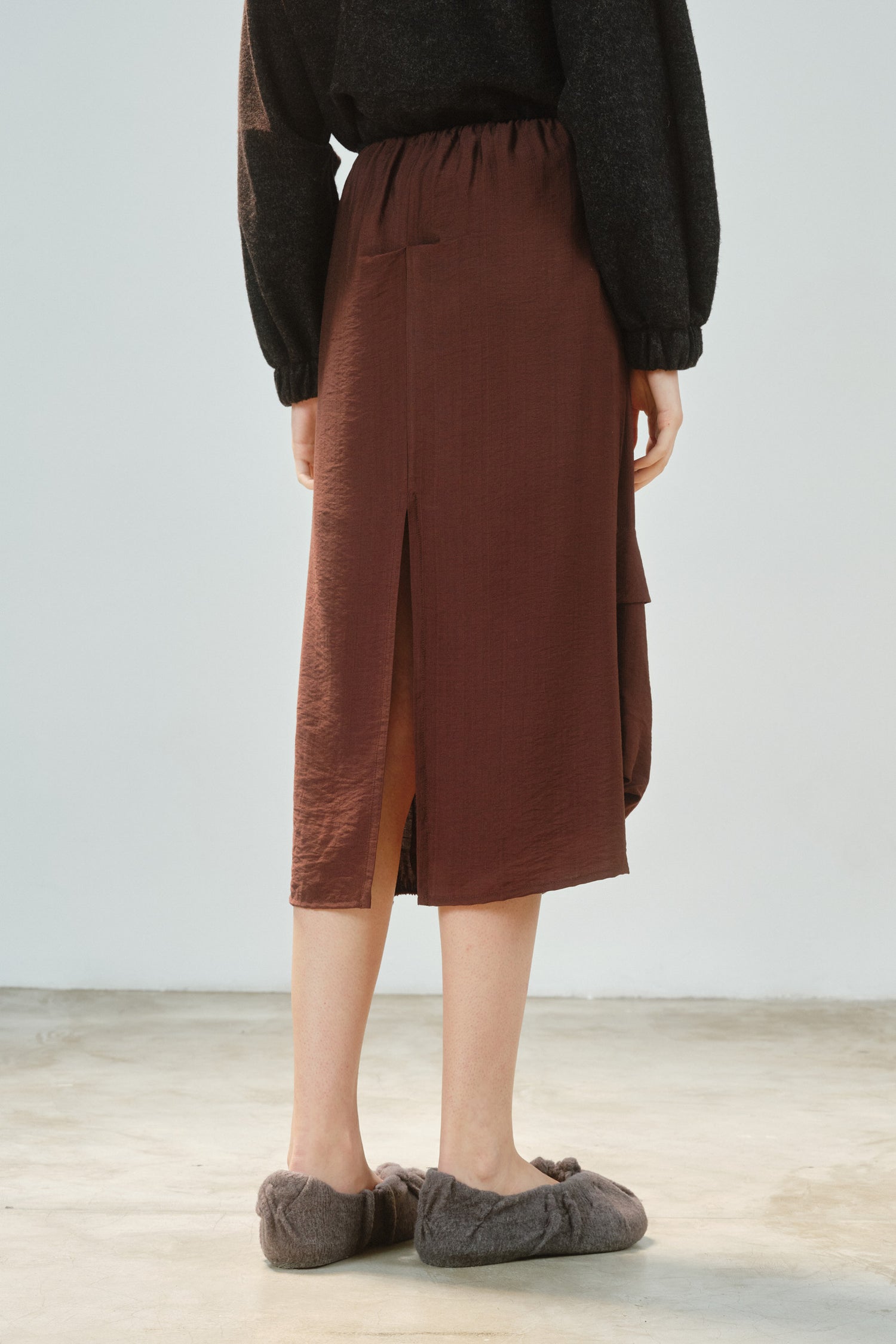 • Saia de comprimento longuete, com design que equilibra fluidez e estrutura.